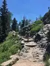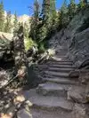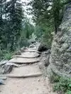 It was a difficult trail for us as near senior citizens. I was determined to make it. We did! It was pretty. However I would not do it again. Start early in the morning when it is cool. We arrived at 4:30. It took us 2 1/2 hours to make it. We had regular tennis shoes. Make sure you have good threads on soles. I walking stick would be great! No bathrooms once you start up the trail! We traveled from a lower altitude and I thought I was not going to make it down! Stop at Safeway or Rocky Mountain Pharmacy and buy a can of oxygen boost! This helped me recover. It took me about 8 hours to recover.