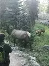 You’ll especially want food when you get to the top. There is a small waterfall, as well, on the trail. And when you get to the top, there are two distant waterfalls below the glacier. Watch for cheeky chipmunks all along the way. (Try to resist feeding them!) We started our hike at about 6:30 AM, and there were very few people on the trail. If you wait much later, you will have to park down in shuttle parking, and then you will be surrounded by everyone who just rode up with you on the bus. And if you don’t think you can exert yourself after reading this review, at least make sure you go around Bear Lake, near where this trail starts! It is an easy walk, even for these Texans, and great for little kids. The surroundings are also magnificent! Sidenote: we saw two deer at the entrance to this trail, right in the parking lot when we arrived! And I’ve seen numerous elk on the drive up, in past years. If you want to see moose, they are starting to migrate over to the east side. Ask the Rangers where you can find them. We saw two huge bulls just 2 miles inside the west entrance to RMNP, at Sheep‘s lake. But I heard there was also a mama with a baby at Sprague Lake, in the month of July. This is my favorite place on earth to visit! And I have a sister who lives in Hawaii. You gotta go!