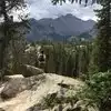 Starting at the Bear Lake trailhead (9475 ft above sea level) I hiked to Nymph and Dream Lakes. For someone who lives near sea level (on the left coast), it took me awhile to get as far as I did. They are worth it and I was able to meet and talk with other hikers along the way. Emerald Lake was about .7 mile further on and, I'm told well worth it, but my body had had enough and it was beginning to storm (rain, hail, and thunder).