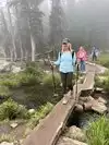 Picture 9 a.m. weekday morning in October with rain and 40 degrees. Well, that didn't discourage the 400-500 people that we saw on the Emerald Lake Trail. Despite the crowd (not nearly as bad as in the summer according to the rangers), the trail was fine. Not great views due to the low cloud cover. After 3 hours hiking, we arrived back to a packed parking lot. Believe the guidebook when it says to start with headlamps pre-dawn. The shuttle would be a good idea as well given the parking crunch.