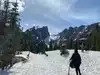 Went to Colorado in Feb hoping to ski and so some serious hiking. This trail did not disappoint. Doing the trai was one of the most exhilirating and scary experiences. The day before doing the trail we called the park ranger and asked about the conditions of the trail given that it was mid February. The park ranger said it hadn't snowed lately and that although there was snow on the ground that we didn't really need snow boots as a good pair of hiking shoes would suffice. As a result my boyfriend and I decided not to rent any snow shows and prepared a small bag-pack with water, small snacks and sandwiches. That day we wore some underarmore underneath our jeans, wore long sleeves, our jackets, a pair of cheap knit gloves each, scarves, and our winter hats. We left our hotel early and drove for a couple of hours to reach the start of the trail. At the beginning of the trail we saw a very small park ranger office, we went in and asked for a map, informing them that we wanted to do the emerald trail. That's when the park ranger looked at us and told us that we weren't prepared as snow was packed and slippery not to mention that they were expecting some snow in a couple of hours and that if we were beginner hikers that they didn't recommend we do it. We were extremely disappointed and a bit stubborn. At the time in the morning the weather was nice with the sun was out and shinning brightly...so we decided why not. We took the map they gave us and started hiking. We quickly realized that it was extremely hard to follow the trail as the posts were hidden underneath the snow so we decided to follow a couple that was also hiking it, or so it appeared. We ended up managing find a trail in the snow, not very defined but apparent enough that it had been threaded by people. The map that was given to us was for the most part useless given that we couldn't see the posts but it at the very least told us the general direction. For the better half of the trail, the scenery was beautiful as the sun was out and the snow on the trail was packed BUT NOT too slippery for our hiking boots. We really enjoyed this part of the trail as it takes you through the woods and up the mountain to beautiful cliff scenes. And then, it started to snow...it started slow but the temperature dropped quickly. At this point we kept following the couple ahead of us as we feared we would get lost on our own. Slowly the snow got stronger, but we kept going, thinking we would reach emerald lake. But as we reached the lake before emerald, we realized how poorly prepared we had been for this in term of what we were wearing as we were getting cold, and our glasses we freezing making it hard to see. At one point we got lost, and couldn't find our way as the snow was coming down fast obstructing our view and there was no one in sight. We managed to see a group of people emerge out of nowhere and we asked if we could tag along. We realized then that it was family of 5 people that had hired an expert hiker from the area that knew it well enough that he didn't need the posts. That's when we realized how close we had been to being lost without realizing it. By trailing behind the group we made it to emerald, the family had snow boots so they moved much faster than we did but some of the family members were of older age which slowed them down and allowed us to catch up to them. When we made it to emerald lake we saw the vast lake frozen and covered in snow, and even in that weather it was a beautiful sight. It was as if you saw nature at it's harshest yet untainted and untamed. Definitely, recommend this trail but please take certain precautions...dress appropriately, know your way around, and go in a big group. I can only imagine how much more radiant and full of life it must be in summer. I hope that I make it back as it stole my heart :)