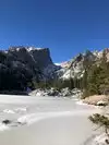 Right now the lakes are all frozen over and the trail goes over Dream Lake!