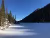 This is a wonderful hike to this beautiful frozen wonderland. You have to pass through other two lakes to get to this road is snowy but easy take I would recommend doing it