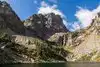 Emerald Lake is a circular lake nestled below the mountain peaks from three sides, offers panoramic views of glacier and rugged cliffs. Waterfalls and streams enrich the lake, enhancing the scenery to the max. Since it's quite popular, it's easy to find/stay on the trail by just follow other people.