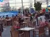 We went on a Saturday and had purchased tickets in advance, which I recommend because there was a waitlist to get in. We arrived around 11 am and it was already full. The tables and chairs were all taken. Cabanas were already rented but they really don’t appear to be worth the money. There is a TV but it’s insanely loud that I don’t see how you could hear it. There were no lay down loungers for littles to take a rest. Just a plastic table and plastic chairs. They serve food and alcohol. Line moved quickly at concession for the food and they will deliver it to your table.