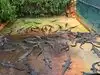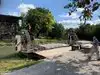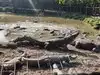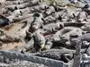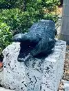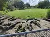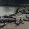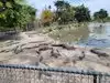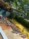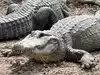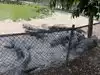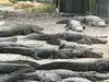 View of alligators in a park and concrete parks with baby alligators.