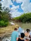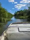 Boat. The driver didn't slow and went right over one. Forget seeing wildlife, the boat scares it away. At the start of the trip, the driver pointed out a large lizard sunning itself on a raised area in the canal. In our opinion, it was a fake. It was in exact same position when we returned, zero movement at any point.