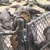 The animals are in tiny cages and piled on top of each other. They don't look happy. It's painful to see.