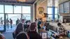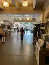 This building has multiple places to buy things like artisan coffee, cheeses, and soaps. Lots of places outside to eat and drink by the water.