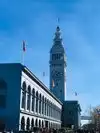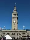 Since it proclaims at the front of the building: Port of San Francisco it is a terminal for ferries that travel across San Francisco Bay, but also a food hall and market place opened in 1898 survived both earthquakes (1906 and 1989) with little damage due to its good reinforcement.