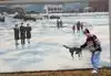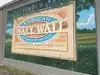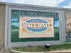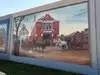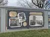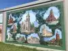 Neat little walking history of the area portrayed by artists renderings on the flood wall. Small town pride on display.