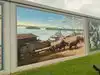 What beautiful artwork to show the history for the area . Is worth checking out , we were able to talk to someone that happened to be down there that told us about the artist and give us some history about the area .