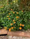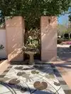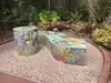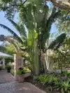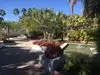 So many reasons to love this botanical garden! First I am SO grateful they open at 7am. This means we can enjoy the gardens before the heat of the day. Second - -the pathways are wide, smooth, and frequently have interesting shapes embedded into them. Third -- roses in February! Fourth -- cool and unusual specimen trees such as Pride of Bolivia, Gumbo Limbo, white powder puff, and Joy Perfume. Fifth -- they allow dogs! Lots of artistic touches such as mosaics and a lovely little succulent 'fountain.' Oh and I almost forgot -- they allow dogs on leashes. There is also the kalimba near the parking lot so you can make a little music, lots of varieties of palm trees, bromeliads, and a small herb garden.