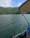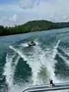 We were camping in Cherokee at Yogi Bear Campground and drove over to where I booked a 24 ft pontoon boat from Alarka Boat Dock for half a day, we ended up staying the full day 10am - 8pm. The ride over was about an hour. This lake is very beautiful with clear blue-green water, the views are awesome. We boated all around the lake up to the dam and back. We stopped along the way at different islands, to swing off the rope swing and just out in the big middle to swim and tube taking in all the beauty. Out of the entire trip- this day was my favorite part of the trip! My kids all had a great time as well as my two dogs- a great Dane and dachshund.
