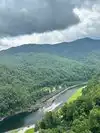 A beautiful stretch of water surrounded by wooded hills and mountains easily accessible on route 28. There are some good stopping places where you can see the view and driving over the dam links in with some trails (including the Appalachian Trail) though we did not find that we got a better view of the lake from these as they stay in the trees for a long time. Good food outlet at Fontana Village too.