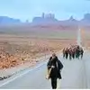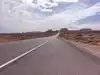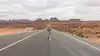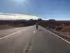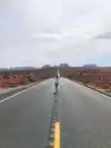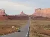 As we came over the hill heading west on US highway 163, we saw dozens of people standing in the middle of the road. We thought there had been a horrible accident. As we drove closer, we could see it was just tourists risking their lives re-enacting the highway scene from Forrest Gump. With cars doing 70 to 80 mph down this grade, there is going to be a serious accident here. With that being said, it is a very scenic part of the highway.