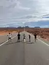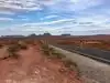 As we drove on hwy 163 to Mexican Hat, UT I was looking for the spot on the highway that was shown in Forrest Gump. Approaching the crest of a hill, we noticed 15-20 young people in the middle of the road. We slowed down and parked in a turn out area. We noticed the tourist were back in the middle of the highway taking pictures.The view that we hadn't seen was BEHIND us (facing south back to Monument Valley. It is a nice view of the monuments as we took pictures as well.