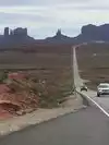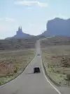 There are a few scenic places to stop on the road to Monument Valley to see this. This is the classic view.