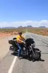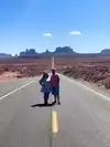 Luckily the road was quiet so we could stand in the middle and take a photo with monument valley in the background.