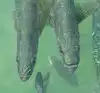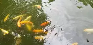 The fish know that they'll be fed, so you just need to walk up near the edge and they all start to congregate.