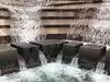You progressively step down some stairs into the center of a man-made waterfall. It's really cool when you hit the bottom because you hear water all around you. Very refreshing.