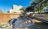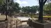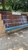 There are at least 2 entrances to the park at opposite corners. There appeared to be 3 different water features surrounding a small plaza in the middle. There were also stone-capped landscaping / walls surrounding the place.