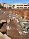 No water in the main fountain, and absent that, it's a large concrete pit that at least you can walk down into, but.... The quiet pool would be restful, though a wedding occupied that. The third area did have water. Some 'mountains' to climb and it is a good place for photo ops. Overall though it kind of emphasizes the arid (perhaps lunar) nature of town center and hard by a blank convention center and railyard, this isn't (or wasn't, without people at play anyway) a destination per se. Still, as an example of brutalism - it is worth seeing.