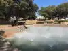 The final feature is a slightly sunken pool with spray heads at intervals, creating a spray level about 3 feet above the pool, along with shifting rainbows if it is sunny out.