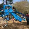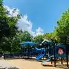 Wonderfully landscaped and expansive park that has something for everyone. The massive state-of-the-art jungle gym was a big hit with my 4 year old, as was the full-size railroad steam engine parked next to it. Other attractions for older kids and adults included a wide range of swing sets, ball courts, a beautiful lake and stream with plenty of shade, and lots and lots of opportunities for bike riding or dog walking.