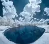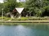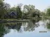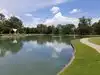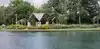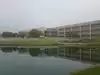 There is a large pond separating the various buildings from the walkway to the site. It is beautifully landscaped and well taken care of.