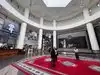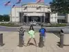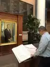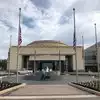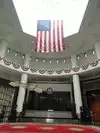 Retractable bollards control entry in the museum’s circular drive adorned with US flags. While security personnel and metal detector greet you in the entrance, museum docents await in the large lobby filled with Presidential portraits, gift shop, tables, and restrooms.