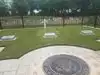 The burial ground is set up at the end of a winding pathway with a beautiful view. You can walk around the pond and look at the many flowers blooming and have seating along the way to take in the serenity.