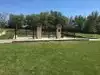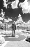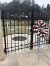 To view gravesite, walk to the left of the pond. The rose garden is to the right. Benches are strategically placed for those who may need a break.