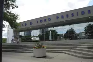 Located in downtown Grand Rapids on the bank of the Grand River stands the Gerald R.