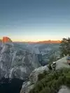 Glacier Point is not on the main Yosemite Valley shuttle route and one needs to take a different route from bridalveil falls junction. Views are truly spectacular from this point and it is well worth the drive. The temperature can fall a lot after sunset and therefore don't forget to carry a jacket or windcheater. Parking can be a bit of a challenge during the main tourist seasons and you may need to walk a little to reach the point