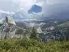 Amazing view of Half Dome! There was a thunderstorm coming through when we were up here and it made it all the more beautiful and exciting (and a little scary since we were up so high!). Several different areas to get good views (there's a waterfall too),and a small gift shop with ice cream treats.