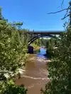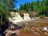 What a fantastic park with great trails around the waterfalls. Best part is that the visitor center is part of the wayside so you can park for free for two hours and hike without a state park pass which was great for people that are just passing thru. We decided to buy a park day pass and drove down to where the river flows into Lake Superior.