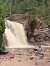 The falls area is a short walk and accessible for all. The water was very low but there were still a falls and the kids had a great time exploring and playing around. we got some fantastic pictures and really enjoyed the nice morning. Not a ton of people but when we left about an hour later there were a lot coming in and the parking was full. There are trails you can take from this area to Lake Superior but it's about a mile hike. We decided to load back up in the RV and go down to the picnic area (a fee area) and have a short walk to the Lake to look for rocks and agates. Also very fun and a must-do! The flies were horrible during our trip out to the Lake but not a one at the falls.