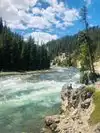 Nice scenic views of mountain gorges and winding river with rapids and waterfalls. Nothing overly dramatic or spell binding but worth seeing if you are in the park.
