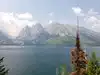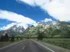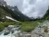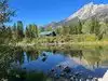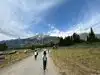 Very great long trails around the mountain. Beautiful lakes and grassland. The lake is nearby the mountain, and the scenery is great. The trails are all around the snow mountains.