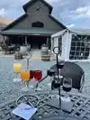 Stopped in late afternoon on a rainy day. The indoor tasting room was closed but they had an open air pavilion with high tops, multiple tents with seating as well as tables with umbrellas. They also had Adirondack chairs by a creek but due to the rain we sat in the pavilion. They offer flights on weekdays and they have 4 pre selected flights of varying types of red and white wine.I selected the dry white which came with 4 - 4 oz pours. They had nibbles for purchase, cheese and crackers, chocolates and bags of chips. You are overlooking their vineyard and they had music playing. Very relaxing way to spend the afternoon.