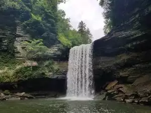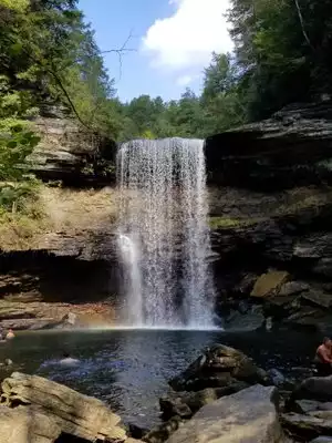 Had a great hike here to both waterfalls. There is a small trail that leads to where a small house used to be. Time it right(come on a weekday or during the school year) . The big waterfall lagoon where you could swim.... I counted 48 people there(big families with many noisy small children) ; which is upsetting because typically I go on hikes to avoid people. It's about an hour and 15 trip from Nashville(180 miles r/t) I would highly recommend it if you are not an experienced hiker , would like to get outdoors.