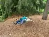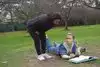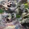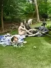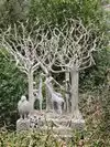 They have life sized, fully painted human sculptures doing everyday things hidden within the foliage. Examples are couple of students with books who have fallen asleep,or a businessman stretched out on a bench, napping with the New aYork Times over his head.