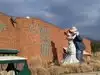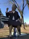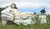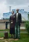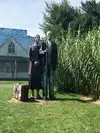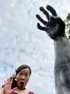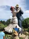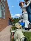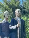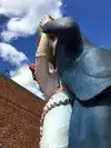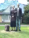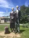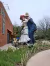 couple sculpture. At the 30-foot American Gothic, I photographed my wife pretending to steal a suitcase almost her height.