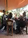The men in the breadline. Enjoy the trees and shrubs. You can eat at Rats. Terrible name good food. Or you can leave and go elsewhere. See my review of Aryana grill and kabob
