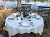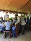 Granddaughters posed at tables with lunch-table
