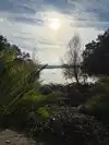 Lovely Sunday morning sitting outside looking at the lake drinking wine that was really good love the Pinot