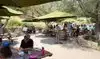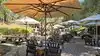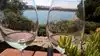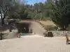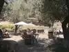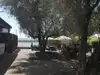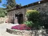 Very nice terrace shaded by olive trees and overlooking the pond.