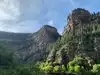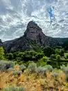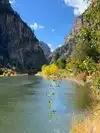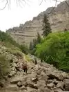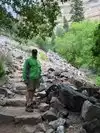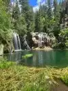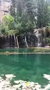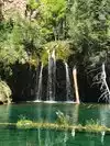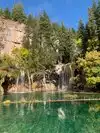 Moderate to strenuous hike to beautiful hanging lake with falls .natural minerals make water so blue. Surrounded by Rick walls. Restrooms at base. Extremely poor parking. Need to bus folk in from external lot.