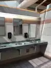 There is a large clean bathroom in the parking where you can also fill up your water bottles.
